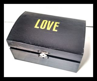 Two wooden boxs. One slightly smaller than the other. Both have blackboard sides. $10